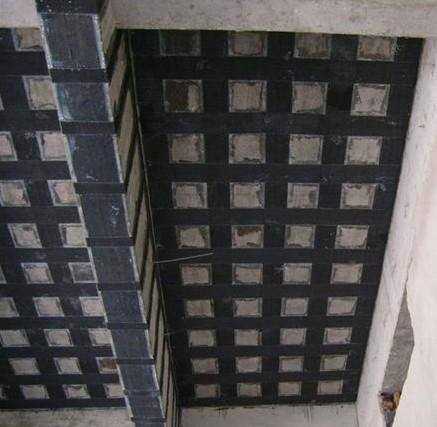 新做混泥土混凝土樓板、梁施工結束并拆卸模版后,按工程圖紙規定開展板、柱的碳纖維布結構加固。