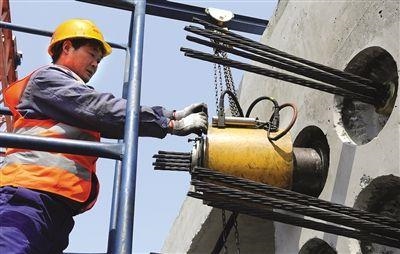 點(diǎn)此關(guān)心微信公眾號(hào):市政工程路橋區(qū)秘笈。安裝好限位開(kāi)關(guān)板之后,吊裝專(zhuān)用型液壓千斤頂。液壓千斤頂務(wù)必選用鍍鋅鋼絲繩吊裝以保證安全。吊裝以后,安裝好專(zhuān)用工具錨、專(zhuān)用工具夾片。專(zhuān)用工具夾片的安裝務(wù)必合乎《公路橋涵施工技術(shù)規(guī)范》(JTG/TF50-2011)有關(guān)規(guī)定。專(zhuān)用工具夾片未起功效或未徹底起功效都是造成 最后伸展量偏差偏大。隨后連接張拉儀與液壓千斤頂?shù)氖謾C(jī)充電線,張拉一孔結(jié)束,不可牽扯該手機(jī)充電線用以挪動(dòng)液壓千斤頂。以便使鋼鉸線承受力勻稱(chēng),理應(yīng)選用梳編穿束加工工藝,接下去安裝好儀器設(shè)備無(wú)線天線。